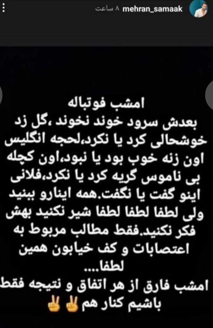 مهران سماک در آخرین استوری صفحهٔ شخصی خود در اینستاگرام از مردم خواسته بود کنار هم باشند و فقط بر اعتراضهای خیابانی و اعتصابات تمرکز کنند